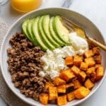 A delicious and easy-to-make high-protein ground beef hot honey bowl packed with wholesome ingredients like black beans, corn, and rice or quinoa. Perfect for a quick dinner, this skillet-cooked recipe combines savory spices with a sweet and spicy hot honey drizzle for a satisfying and flavorful meal ready in just 30 minutes.