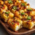 Jalapeño Popper Tater Tot Cups are a delicious and easy-to-make appetizer featuring crispy baked tater tots formed into mini cups and filled with a creamy, spicy blend of cream cheese, sharp cheddar, diced jalapeños, and smoky bacon bits. Garnished with green onions and seasoned with garlic powder, these bite-sized treats combine textures and flavors perfectly for game days, parties, or casual snacking.