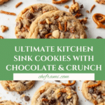 Kitchen Sink Cookies are a delightful mix of sweet and salty flavors packed into one chewy, flavorful cookie. Loaded with semi-sweet chocolate chips, toffee bits, crushed potato chips, and chopped pretzels, these cookies offer a unique texture and taste explosion. Perfect for those who love cookies with a variety of mix-ins, they bake up soft in the center with crispy edges and topped optionally with flaky sea salt for an extra burst of flavor.