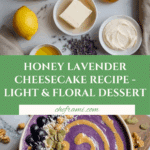 Keywords: Lavender cheesecake, no-bake cheesecake, honey cheesecake, floral dessert, spring dessert, elegant dessert