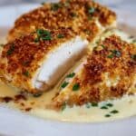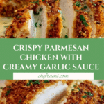 Keywords: Parmesan chicken, baked chicken, creamy sauce, breadcrumb chicken, garlic chicken, Italian seasoning, family dinner, comfort food