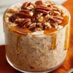 - Adjust and Serve: When ready to eat, remove from the refrigerator. If the oats seem too thick, add a splash of milk and stir to loosen. Pour into a bowl, top with whole pecan halves, and drizzle generously with extra maple syrup before enjoying.