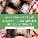 Keywords: mini gingerbread loaf, gingerbread recipe, holiday baking, spiced mini loaves, Christmas bread, molasses bread, gingerbread spice, homemade gingerbread