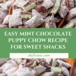 Keywords: Mint Chocolate Puppy Chow, Puppy Chow, Muddy Buddies, Chex Mix Snack, Chocolate Snack, Mint Chocolate Recipe, Festive Snack