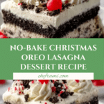 Keywords: no-bake dessert, Oreo lasagna, Christmas dessert, holiday dessert, Oreo cookie crust, creamy no-bake layers, festive dessert, easy holiday recipe