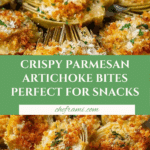 Crispy and flavorful Parmesan Artichokes baked to golden perfection. These bite-sized artichoke hearts are coated in a savory mixture of parmesan cheese, panko breadcrumbs, garlic, and oregano, then oven-baked for a deliciously crunchy appetizer or snack. Perfect for serving with marinara sauce or enjoying on their own.