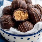 Keywords: peanut butter balls, no bake candy, chocolate coated peanut butter balls, holiday treats, easy desserts