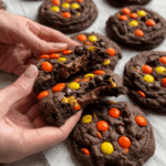 - Fold in candies: Gently fold ¾ cup Reese’s Pieces and ¾ cup Reese’s Peanut Butter Chips into the dough until evenly distributed.