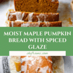 Keywords: pumpkin bread, maple pumpkin bread, fall baking, pumpkin spice bread, quick bread, maple glaze