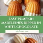 These Pumpkin Madeleines combine the tender texture of classic French treats with the warm, cozy flavors of pumpkin and pumpkin pie spice. Dipped in smooth white chocolate, they make a perfect seasonal dessert or elegant snack for any pumpkin lover.
