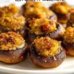 5. Roast in oven: Either refrigerate the assembled mushrooms for later use or bake immediately. Place the dish in the preheated oven and roast for 15 minutes or until the mushrooms are cooked through and the breadcrumb topping is golden brown around the mushroom caps.