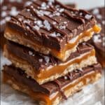 A delicious no-bake dessert that combines crunchy pretzels with rich salted caramel and drizzled semi-sweet chocolate, creating a perfect sweet and salty treat ideal for snacks, parties, and holiday gifting.