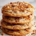Delight in these Salted Caramel Toffee Cookies, featuring a buttery cookie base studded with rich caramel and crunchy toffee pieces. Finished with a drizzle of warm caramel and a sprinkle of sea salt, these cookies balance sweetness and saltiness perfectly, making them an irresistible treat for any occasion.