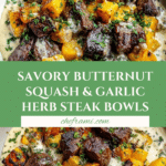 Butternut Squash & Garlic Herb Steak Bowls combine tender steak with sweet, roasted butternut squash and fragrant garlic herbs for a delicious and satisfying meal. This dish is perfect for weeknights or special gatherings, offering a wonderful balance of flavors and textures.