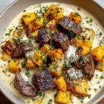 Savory Butternut Squash & Garlic Herb Steak Bowls are a delicious fusion of flavors featuring tender sirloin or ribeye steak paired with roasted butternut squash and aromatic fresh garlic, rosemary, and thyme. This hearty and nutritious dish combines the natural sweetness and creamy texture of roasted squash with the savory, juicy steak, enhanced by fragrant herbs and olive oil. Perfect for weeknight dinners or special gatherings, these bowls deliver a comforting and visually appealing meal that impresses all palates.