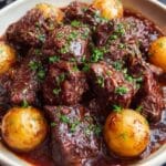 - Serve: Transfer the beef and potatoes gently to a serving platter. Spoon any extra sauce over the top, sprinkle with additional fresh parsley for garnish, and serve warm.