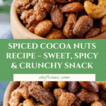 Keywords: spiced nuts, cocoa nuts, cinnamon nuts, spicy snack, roasted nuts, sweet and spicy nuts, homemade snack