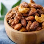 Spiced Cocoa Nuts are a flavorful and crunchy snack mix featuring pecans, cashews, and almonds coated in a spiced cocoa and cinnamon sugar blend with a hint of cayenne pepper. These nuts are baked to perfection, creating a sweet, spicy, and slightly chocolatey treat that crisps up as it cools, perfect for snacking or gifting.