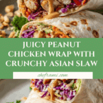 This flavorful chicken wrap combines juicy marinated chicken thighs with a vibrant Asian slaw and a creamy, tangy peanut sauce. It’s a perfect quick lunch or light dinner that offers bold flavors and satisfying textures all wrapped up in a soft tortilla.