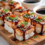 Store any leftovers in an airtight container in the refrigerator for up to 2 days. Reheat gently in the oven at 300°F (150°C) until warmed through to maintain texture and flavor. Avoid microwaving to keep the sushi rice from getting too soft.