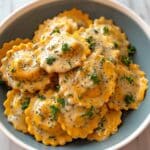 Butternut squash ravioli is a comforting and flavorful dish that combines the sweetness of roasted squash with savory sausage and a creamy maple-infused sauce. It’s perfect for a cozy dinner that feels both special and satisfying.