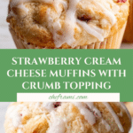 Keywords: strawberry muffins, cream cheese muffins, crumb topped muffins, breakfast muffins, fruit muffins, homemade muffins, berry muffins