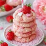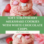 Keywords: strawberry milkshake cookies, strawberry cookies, white chocolate chip cookies, easy strawberry cookies, soft cookies, chewy cookies, dessert recipe, American cookies, cake mix cookies