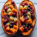 This delightful Cranberry Apple stuffed sweet potato recipe combines the natural sweetness of baked sweet potatoes with a spiced sautéed apple and cranberry filling. Enhanced with cinnamon, nutmeg, and a touch of maple syrup, it’s a warm and comforting dish perfect for fall or any time you crave a nutritious, flavorful meal.