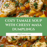 This hearty and comforting Tamale Soup combines a flavorful vegetable and bean base with tender, cheesy masa harina dumplings simmered to perfection. It’s a warming, satisfying meal that brings the flavors of traditional tamales into a delicious, easy-to-make soup.