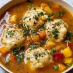 - Step 5: Carefully drop the dumplings into the simmering soup one at a time. Cover the pot and cook for an additional 15–20 minutes, or until the dumplings are firm and cooked through.