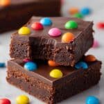 Delight in the rich, fudgy texture of these Best Cosmic Brownies topped with a smooth ganache and colorful rainbow candy-coated chocolate chips. Perfectly balanced with a luscious cocoa base and creamy chocolate topping, these brownies offer a fun and festive twist on a classic favorite.