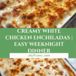 Delicious and creamy White Chicken Enchiladas featuring shredded chicken wrapped in soft flour tortillas, smothered in a rich sour cream and green chile sauce, then baked to perfection with melted Monterey Jack cheese. This comforting casserole is easy to prepare and sure to become a family favorite.