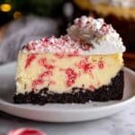 Indulge in this festive White Chocolate Peppermint Cheesecake featuring a crunchy Oreo crust, creamy white chocolate-infused filling with peppermint chips, and a light whipped cream topping. Perfect for holiday celebrations, this rich dessert combines classic flavors with a refreshing peppermint twist.