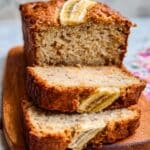 Store banana bread in an airtight container at room temperature for up to 3 days. For longer storage, slice the cooled loaf, wrap individual slices in plastic or foil, and freeze for up to three months. Defrost slices at room temperature or gently warm in a toaster or microwave before serving.