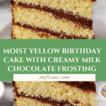 A classic homemade yellow butter birthday cake with a rich milk chocolate buttercream frosting, perfect for celebrations. This moist and fluffy cake combines the comforting flavors of vanilla and butter, layered with creamy chocolate frosting for a deliciously indulgent treat.