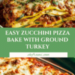 A delicious, low-carb Zucchini Pizza casserole featuring layers of seasoned ground turkey or beef, zesty pizza sauce, fresh vegetables, and melted mozzarella cheese, baked to bubbly perfection and garnished with fresh basil leaves. A perfect healthy twist on classic pizza that’s easy to prepare and full of flavor.